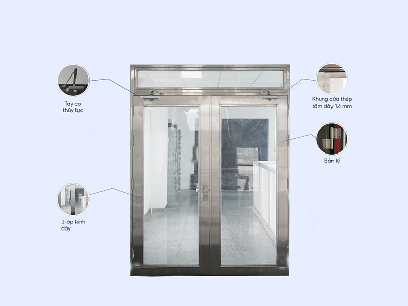 • Khung cửa: Sử dụng thép tấm, chế tạo có độ dày 1,4mm